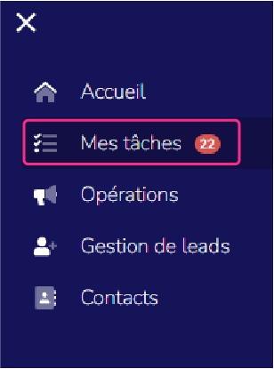 Pour vous rendre sur l’espace des tâches qui vous sont assignées, cliquez sur l'onglet "Mes tâches" dans le menu latérale gauche.