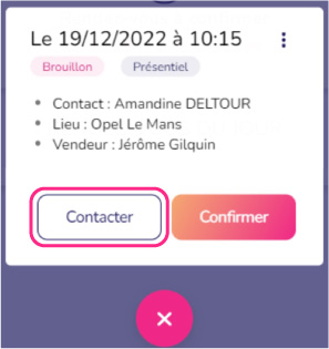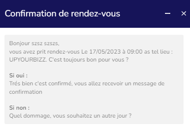 Cette action signifie qu'un rendez-vous a été positionné, mais pas confirmé. Vous devrez donc appeler votre client afin de confirmer le rendez-vous avec lui.