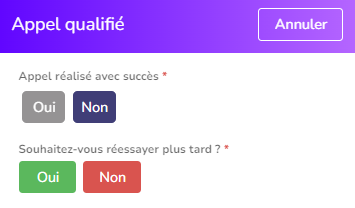 Oui : Réessayez plus tard : re-planifiez une date et heure d'appel.