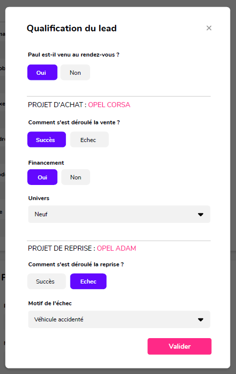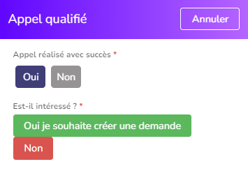 A la fin de votre rendez-vous, vous aurez la possibilité de qualifier le lead et les demandes qui lui sont associées.