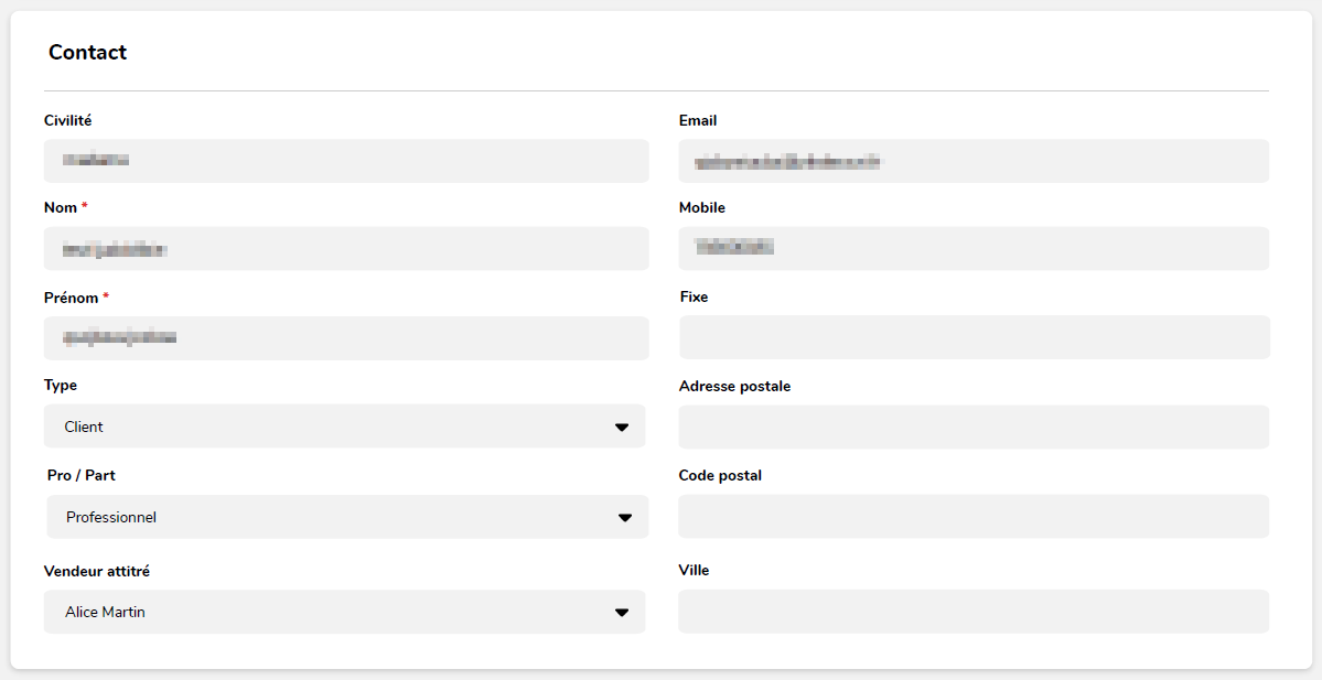 Vous aurez également accès au formulaire de contact. Il sera renseigné automatiquement avec les champs connus. Vous pouvez les mettre à jour à tout moment.