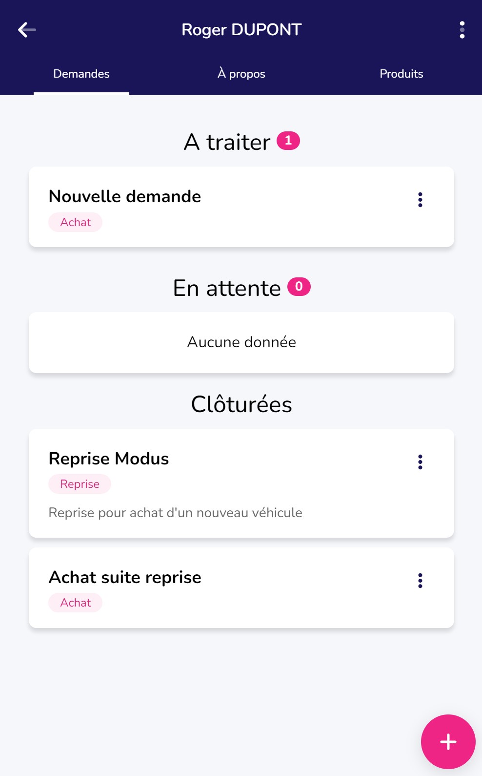 Lorsque vous accédez à la fiche du contact, découvrez toutes les demandes à traiter, en attente ou clôturées liées au contact.