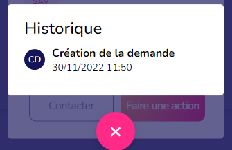 Ici, visualisez tout l'historique de la demande, de sa création à sa clôture.