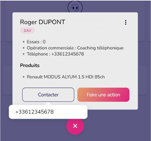 Cliquez sur "Contacter" pour voir apparaître le numéro de téléphone de votre client et l'appeler.